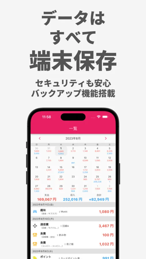 ・入力したデータは端末内のみに保存するのでセキュリティも安心!