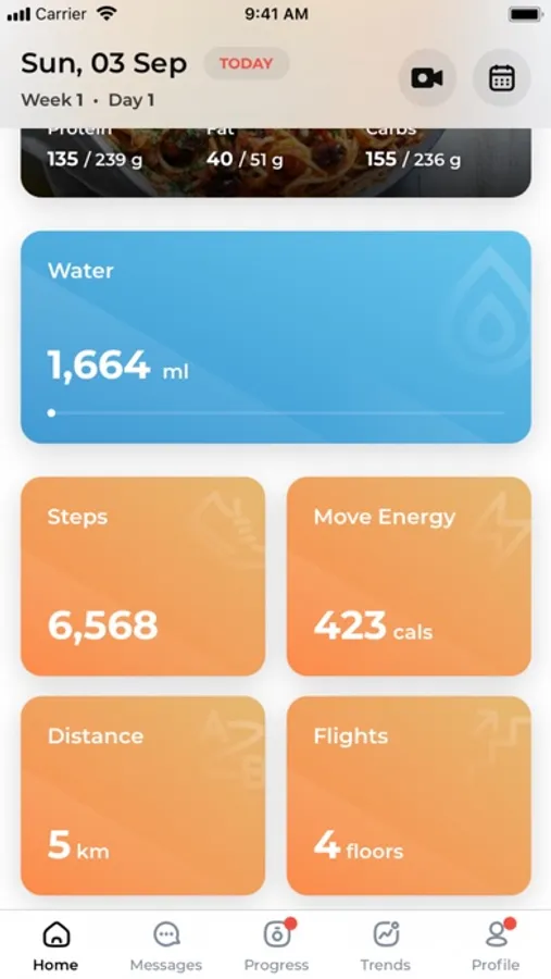 The app integrates with Apple Health to show your daily activity - distance, steps, active energy, and flights to help you better achieve your goals.