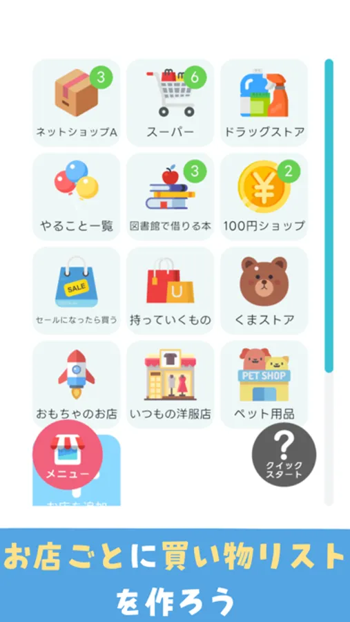 「にゃんカート」は、お店別に買うものを簡単にリスト化できるアプリです。