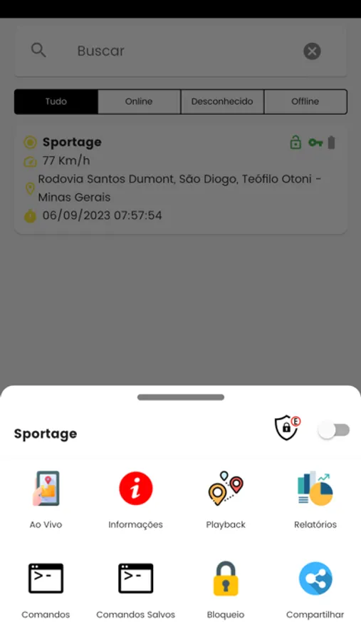 - Bloqueie e Desbloqueie seu veículo quando quiser.