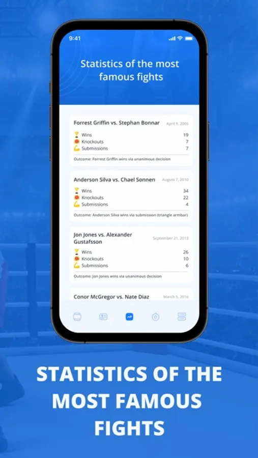 Are you an avid fan of the sweet science of boxing? Do you want to delve deeper into the world of fist fighting, learn the strategies and tactics that make champions, and stay up to date with the latest information from the world of boxing? Stop by now, the app is designed specifically for boxing enthusiasts like you! Discover the secrets of the ring with detailed guides to boxing strategy and tactics. Learn about footwork, defense techniques, combinations and more to better understand this dynamic martial art. Get up close and personal with boxing's greatest legends and current champions. Explore in-depth profiles, career highlights, and personal stories of iconic fighters. Relive the excitement of historic fights with detailed statistics on the most famous fights in boxing history. Immerse yourself in the numbers, savor the drama and gain a deeper understanding of all the most incredible moments. Do you want to not only love and admire boxing, but also master it? You can start self-development in boxing with effective workouts tailored to your fitness level. The most diverse and effective workouts are already available for everyone. But it doesn't end there, you can still test your old and new boxing knowledge. Take part in an interactive sports-themed quiz. Test your knowledge and once again learn something new.