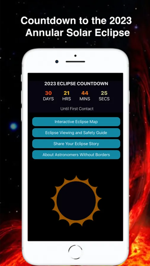 Download "One Eclipse" now and embark on your journey to witness the 2023 Annular Solar Eclipse like never before. By purchasing this app, you have already donated half of the cost of this app to bringing resources to communities around the world!