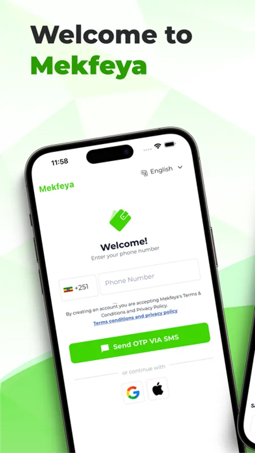 Mekfeya CashBook supports English, Amharic, Tigrigna, Afan Oromo, and Somalian.