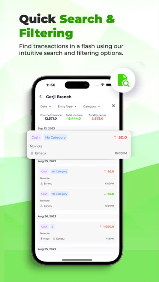 Your go-to app for effortless daily cash entries, organized books, payments and instant account balance updates!
