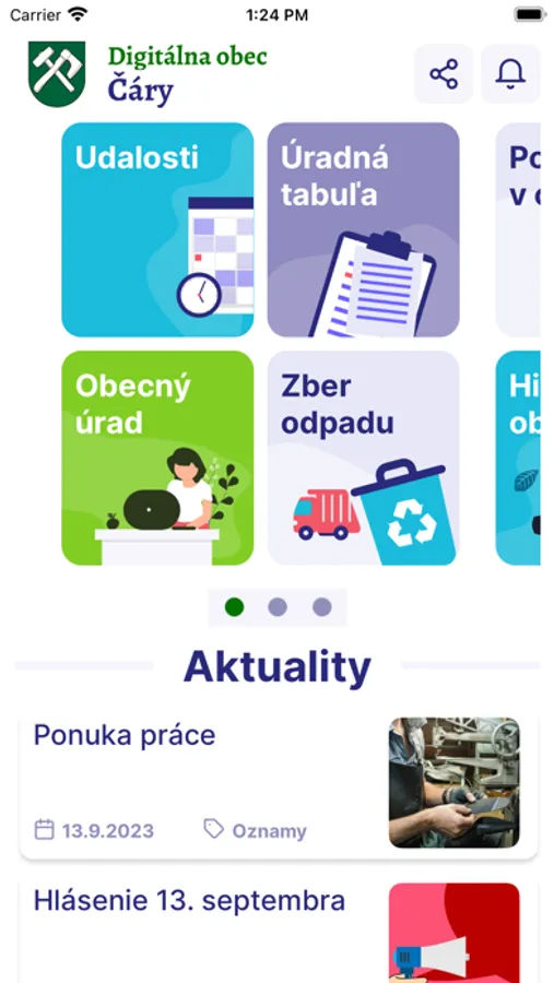Na jednom mieste aktuality, udalosti, informácie z obecného úradu, počasie, kalendár zberu odpadu, história, fotogaléria, podnety, užitočné návody, zasielanie dôležitých notifikácií a všetky ostatné informácie pre občana.
