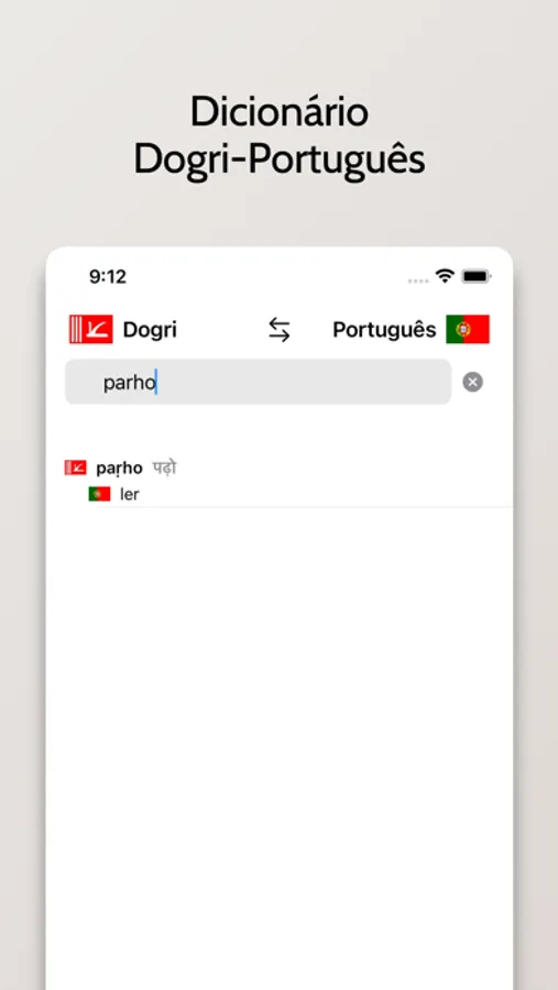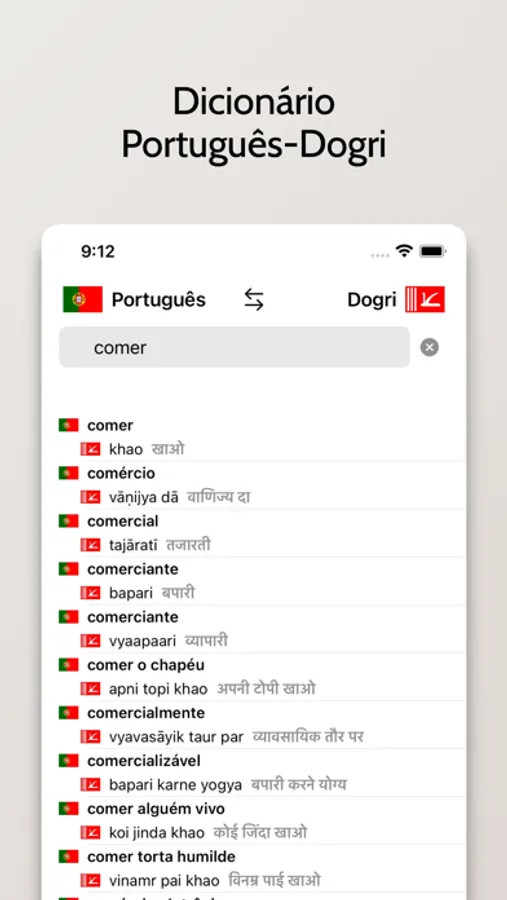 - Capacidade de buscar palavras em Dogri ou Português