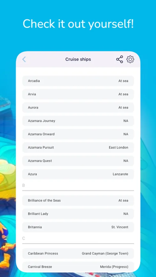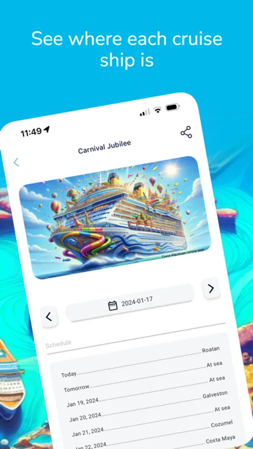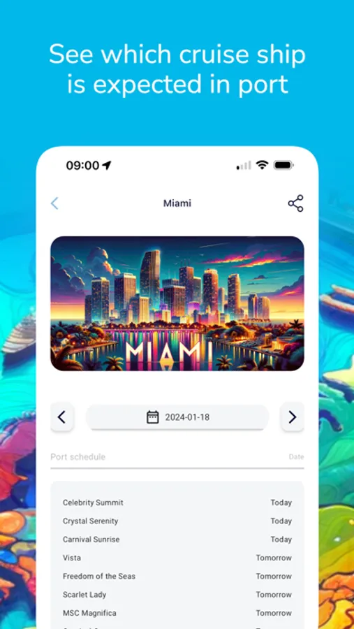 The main feature is to show which other ships you can expect to be in port when you are there. The app presents some basic cruise ship information as well as a basic guide to various cruise ports around the world.