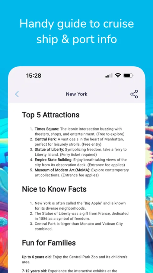 Very useful and informational little app. Allows you to easily search by cruise line, ship, region, or port. Gives you information on each port such as basic facts, what’s nearby, port schedules, etc. Also includes basic info on ships and their current position, as well as the ship’s schedule.