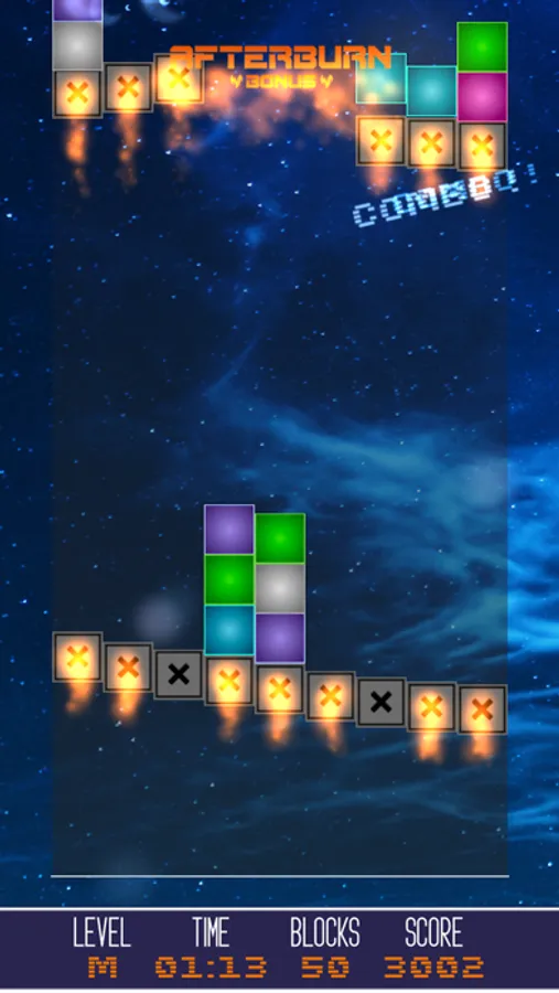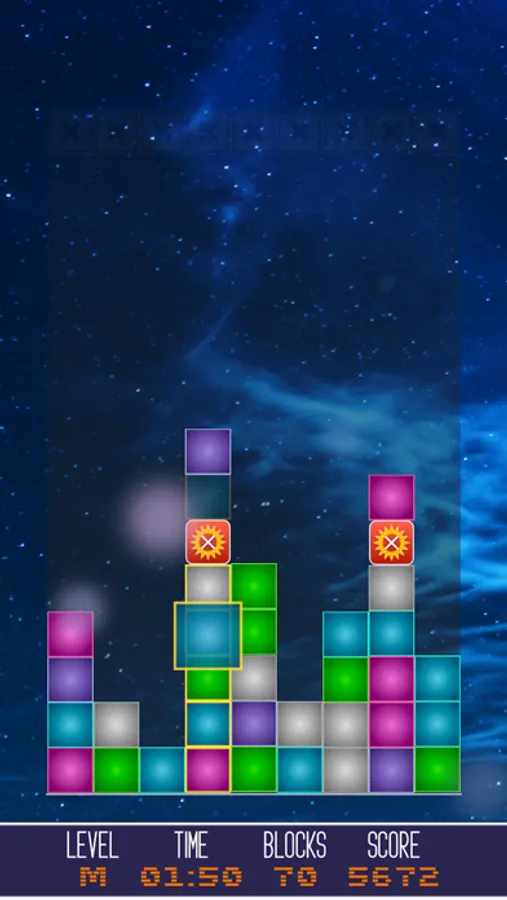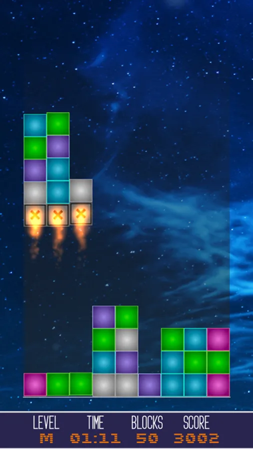 - Move the falling blocks vertically around the board to match three or more of the same type horizontally or vertically and launch them into space.