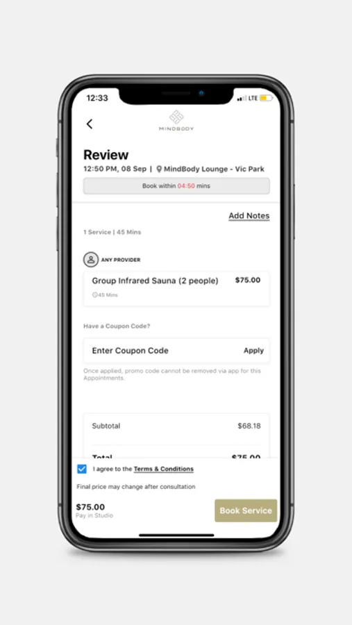 Download the app to view schedules & book sessions at Mindbody Lounge!