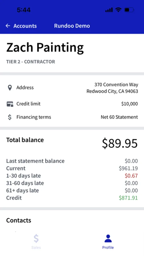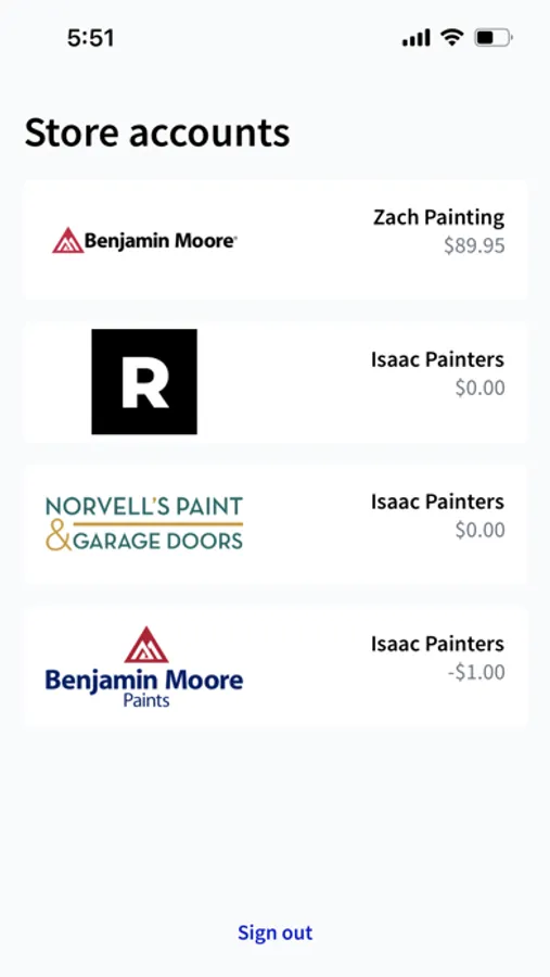 View and manage your accounts at local paint and hardware suppliers.