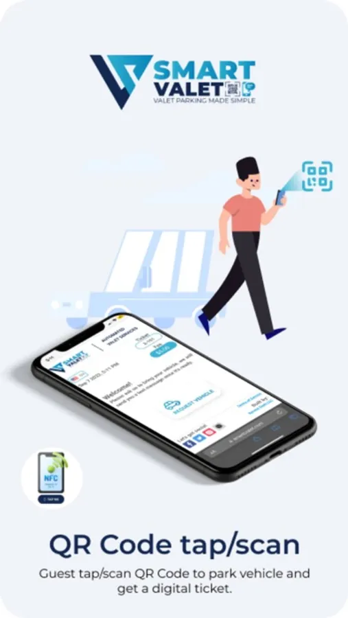 Where Venue's Guest's SCAN/TAP a Smart Ticket and receive a digital ticket on their phone, allowing the guests to pay/tip the valets online, as well as to request their vehicle remotely by simply tapping a button.