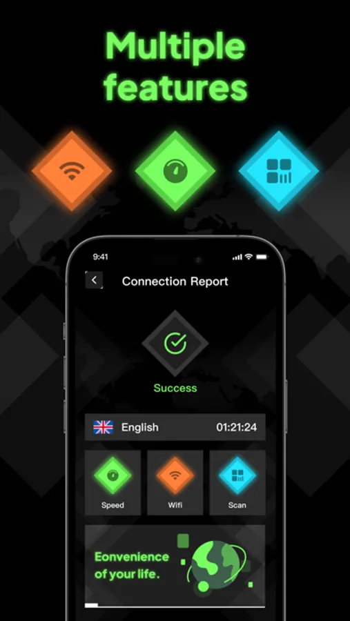 Welcome to our utility app, a powerful application that integrates QR code scanning, VPN services, and Wi-Fi speed testing, providing you with comprehensive privacy protection and a premium internet experience.