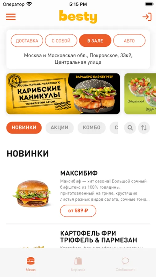 Наслаждаться нашими фирменными бургерами, напитками и десертами можно, не выходя из машины. Укажите при заказе через приложение, как вы хотите забрать заказ. Вы можете забрать заказ в окне BESTY авто, или мы принесем его прямо на парковку.