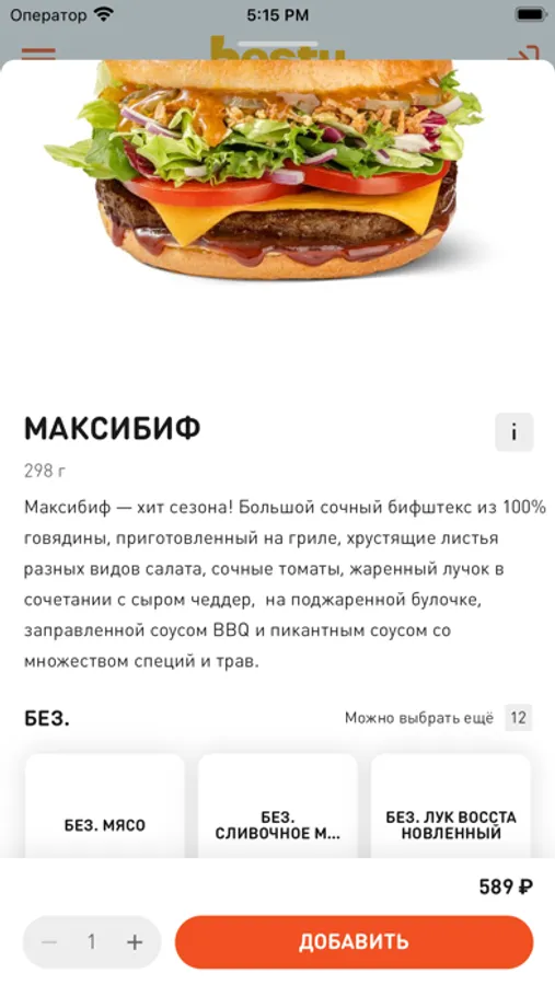Скачав приложение, вы первыми узнаете о новинках меню и выгодных предложениях. Без очереди и быстро сделайте заказ в приложении, и наши фирменные бургеры уже ждут вас! Попробуйте хиты сезона Максибиф или Варадеро Блэкбургер. И не забудьте к ним взять хрустящий картофель фри с соусами и заправками на любой вкус. Побалуйте себя и закажите десерты - торты и чизкейки из натуральных ингредиентов или свежеиспеченные круассаны с любимыми начинками, авторские горячие и холодные напитки.