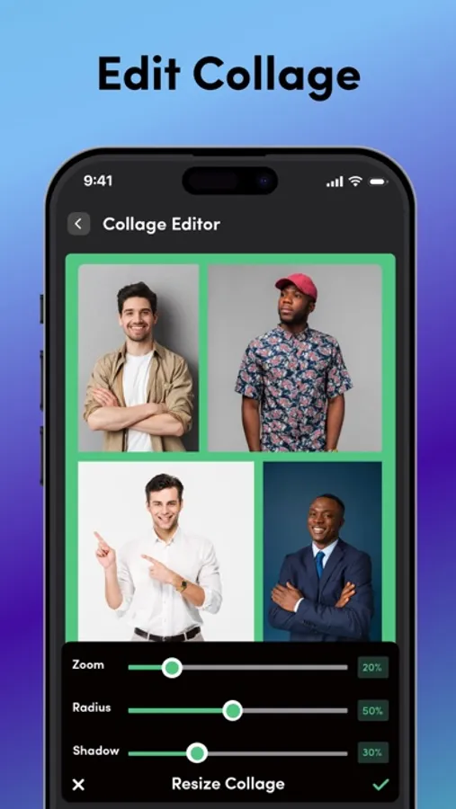 You will find the cutout feature on our application, which can easily remove unwanted backgrounds from a photo you want to use in the collage grid. With our cutout tool, you can remove background and cut photos in fun designs such as stars, squares, hearts, and more.
