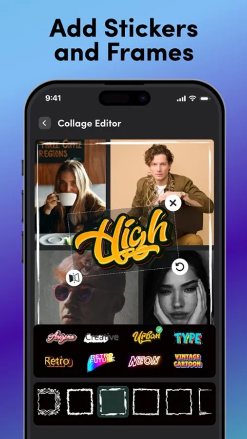 You don’t have to rely on our picture collage maker's default grids of layouts. You can easily personalize our templates and your final creations by adding unique frames, cropping images and stickers, and retouching them with filters. You can find many easy-to-use customization options on our app to beautify your photo collage.