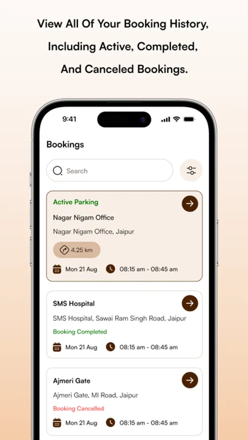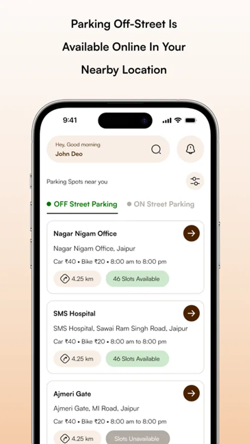 JSCL-Parking is a Parking Application where you can check the nearby available parking slot, rates per hour, search and navigate to the parking places and park your vehicle without any hassle with the help of QR Based Identification Process. The generated QR Code may be stored in phone gallery for future use.