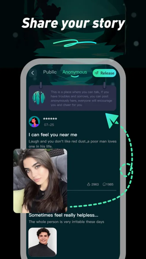 Receive secrets: Receive text or audio stories sent by others, and you can also reply to and encourage others.