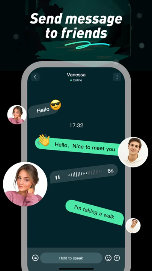 Message chat: You can follow each other with like-minded friends and communicate through text or voice.
