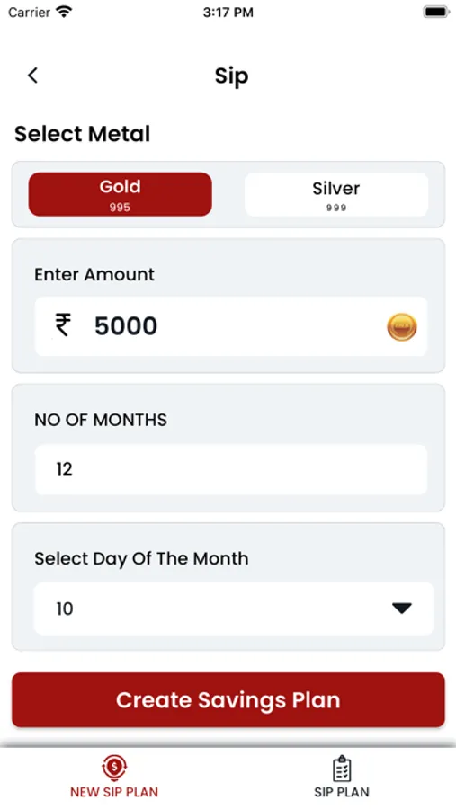 Customers can create an Monthly Saving Plan (SIP) in the App."