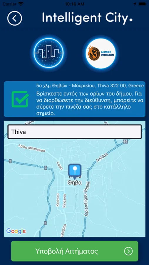Στην περίπτωση εντοπισμού της θέσης του πολίτη εντός των ορίων του δήμου, η