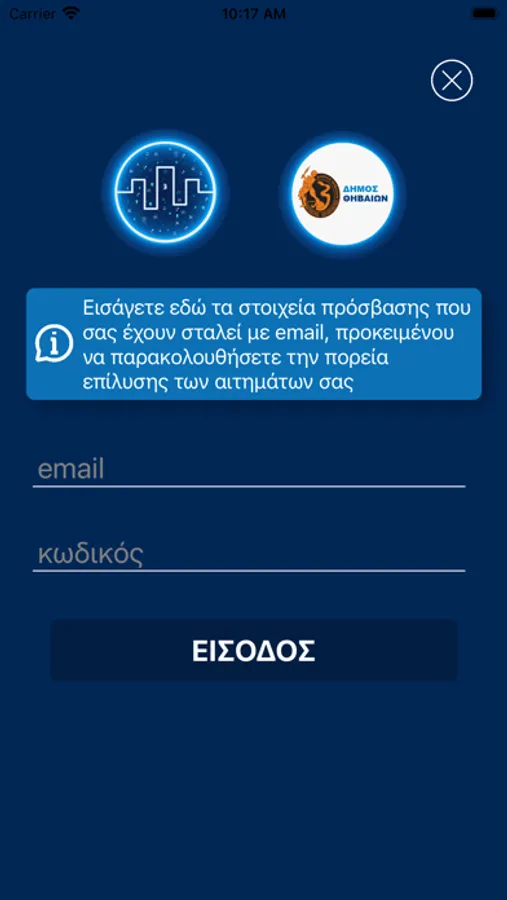 περίπτωση που ο πολίτης εντοπίζεται εκτός των ορίων του δήμου, η εφαρμογή