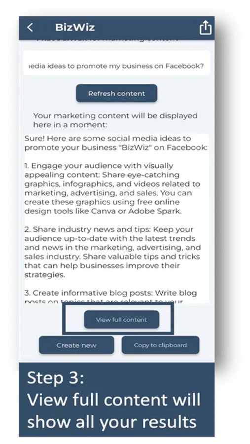 Download our AI Marketing App today and in just a few clicks, you'll get all the top marketing tips to help you promote your business. It's that simple!
