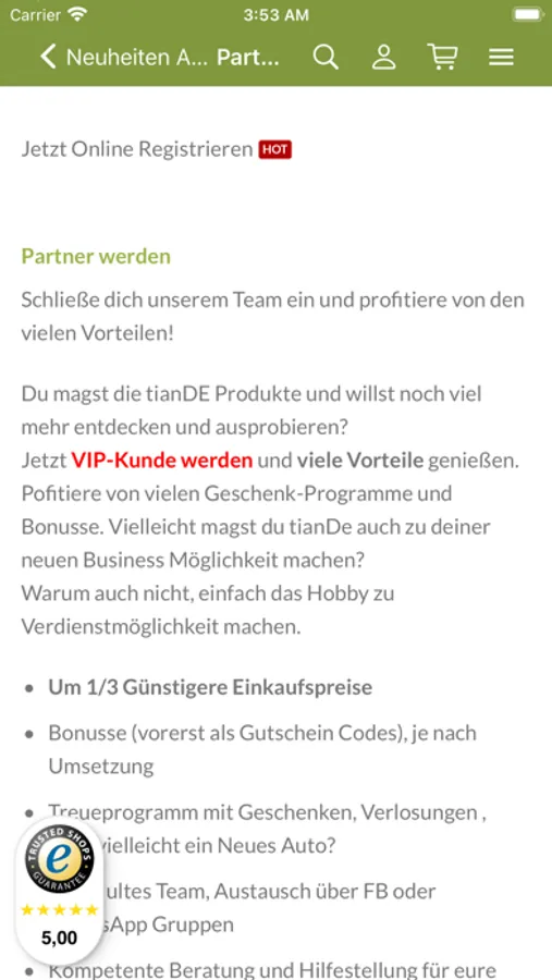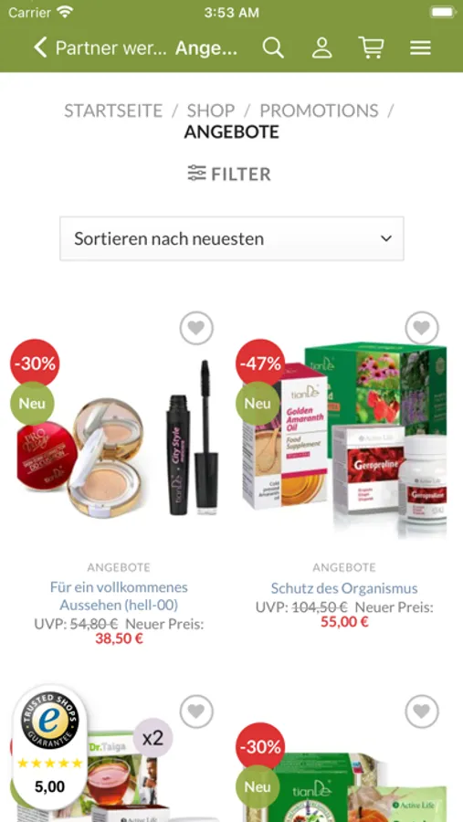 Das Sortiment von TianDe bilden Produkte, die alle ständig brauchen. Sie erfüllen die alltäglichen Bedürfnisse der Menschen. Unser Angebot ist sorgfältig an die Bedürfnisse seiner Majestät des Kunden „angepasst“.