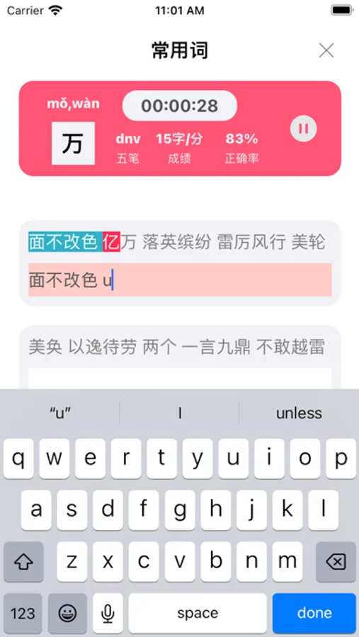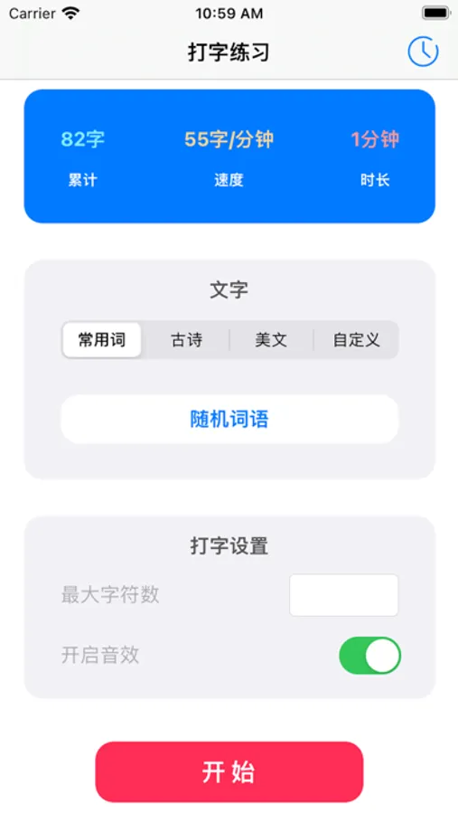 2、自定义文字。自由添加喜欢的文章作为训练素材。