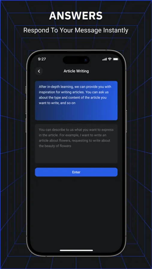 You can use our app when you're having trouble studying, or when you think you're not good at writing or need a touch-up, you can ask a question within the app, click send and you'll receive a reply from an intelligent robot that will help you make effective use of your study time.
