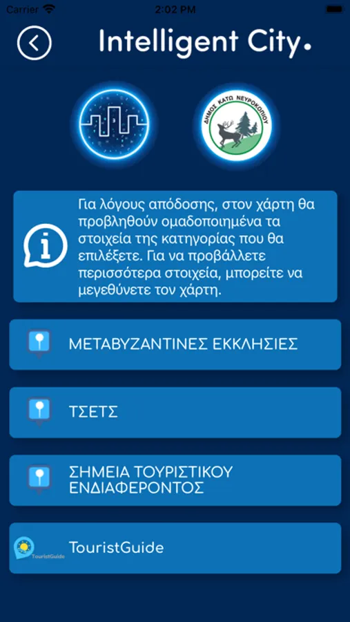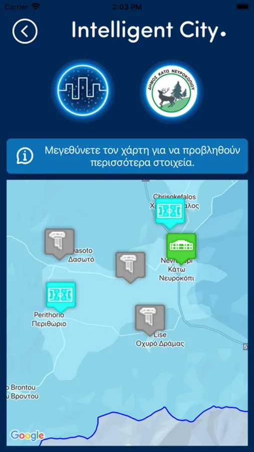 Επίσης παρέχεται η δυνατότητα προβολής των σημείων αποτύπωσης του Δήμου Νευροκοπίου, με την χρήση της πλατφόρμας CityPoints του Intelligent City.