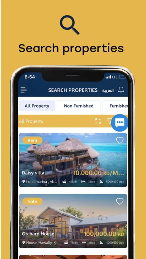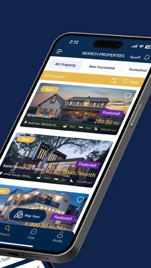 The Bandar Estate App connects you with a vast database of active properties globally, allowing you to find apartments, villas, offices, townhouses, and shops – whether for sale or for rent – on the go.