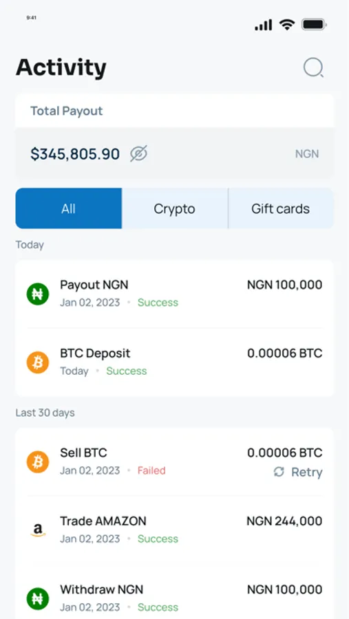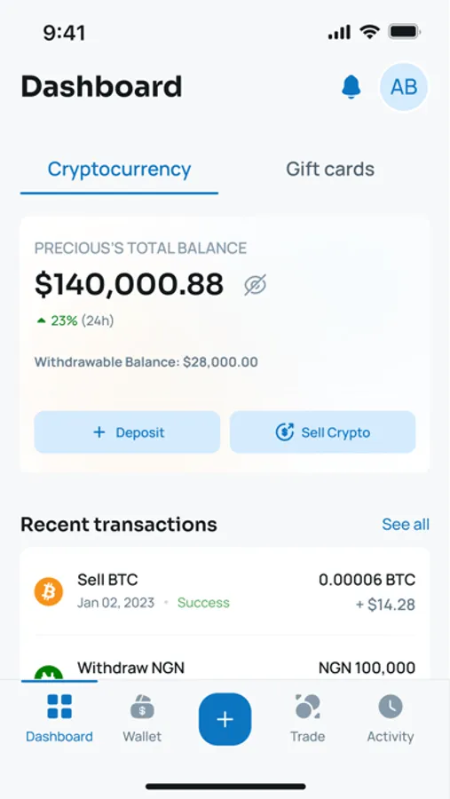 Get Onboarded and Select the coin to be sold. Insert the amount you want to sell in Naira or Crypto, the equivalent amount of what you want to sell in the received currency will reflect. Once the Sell details summary is confirmed, sell Instantly
