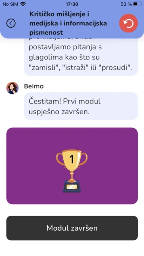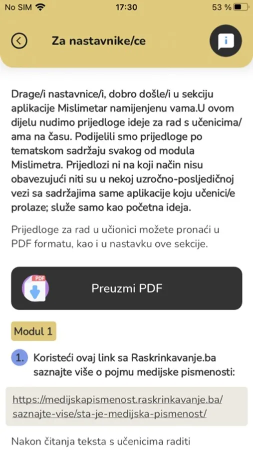 The mobile application Mislimetar is an educational and entertaining tool for formal and informal education. It aims to encourage the development of critical thinking and media literacy among young people.