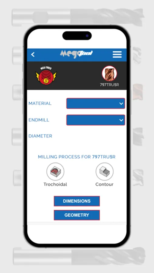 This app is calculating the cutting conditions for different materials with solid carbide endmills and solid reamers.