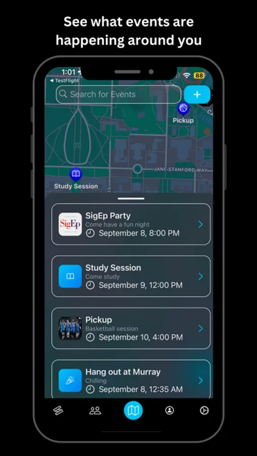 Interactive Campus Map: Explore your college campus like never before! Slide provides an intuitive map interface that allows you to discover all the events happening around you in real-time. With a quick glance, you'll know where the action is.