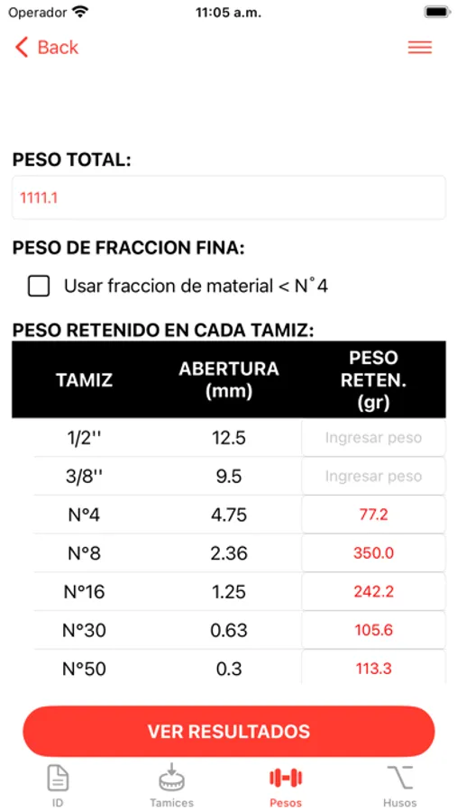 Incluye la opción de utilizar solo una fracción para el material fino (menor al tamiz Nº4).