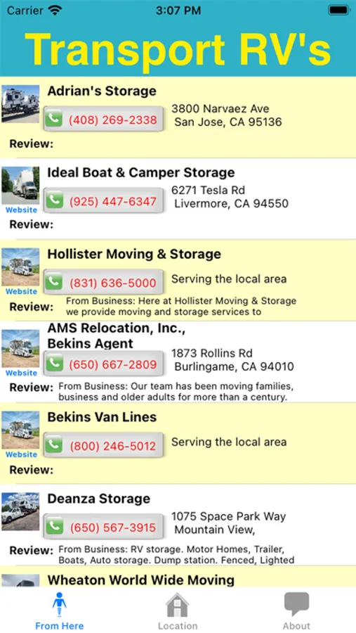 RVTransport app allows RV and trailer / 5th wheel owners to locate transport services that move their recreational homes to other parts of the country. Most times its more efficient to transport RV's, and/or trailers than take the time and costs to drive these homes by the owner(s).The app allows for a quick resource list from where the owners is located or pick a starting location anywhere in the United States. Its hoped that this app will be helpful in obtain transport services.