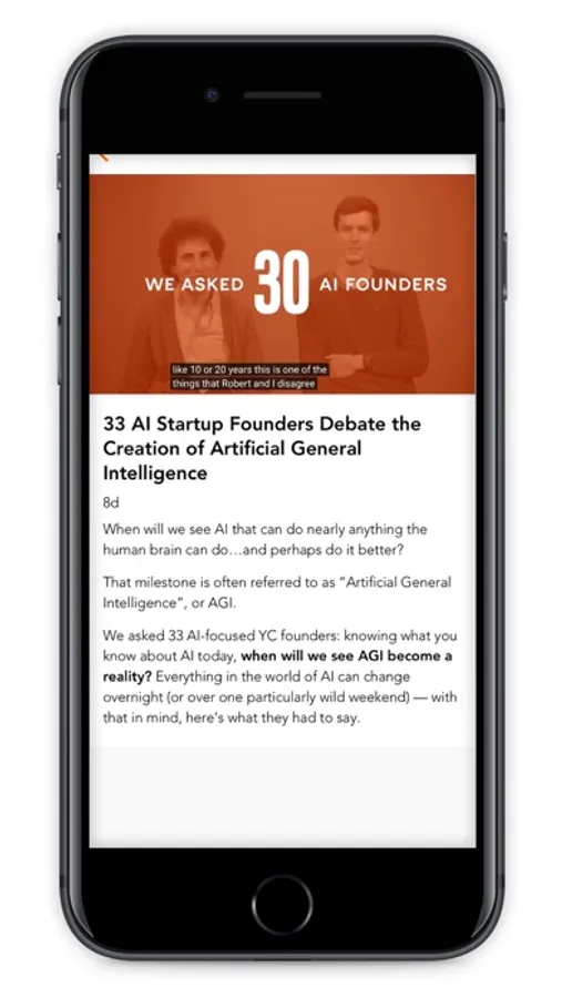 The Y Combinator App is your home for all things YC. It organizes all of YC's YouTube videos, podcasts, and essays. It's also a mobile client for Hacker News, the best startup news source for programmers and technical founders. For founders who have been funded by YC, it has additional features.
