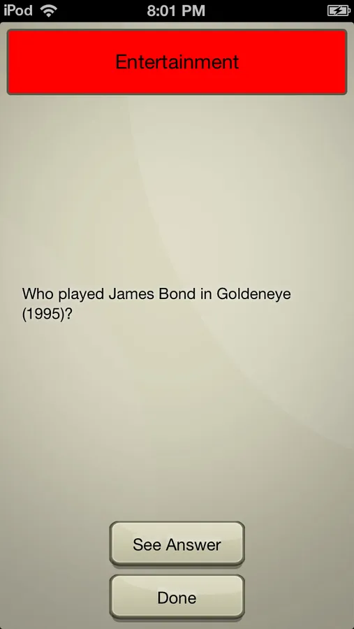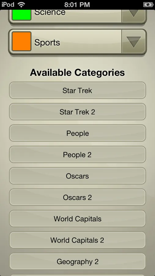 This is NOT a trivia game with scores, hints, or multiple choice. This is several categories worth of quality trivia questions and answers! Use this app with your favorite trivia board game to enhance your trivia game play.