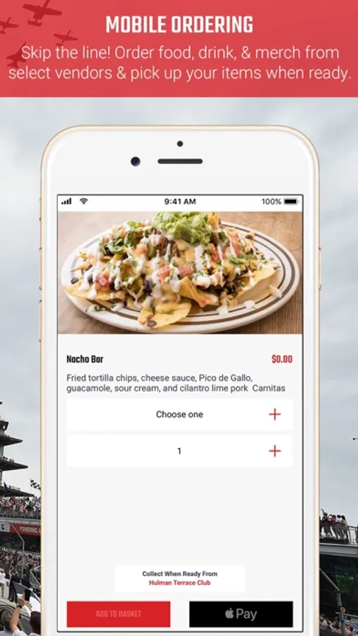 * Mobile Ordering - Skip the line! Order food, drink, and merchandise from select vendors at the track and pick up your items from designated locations when ready.