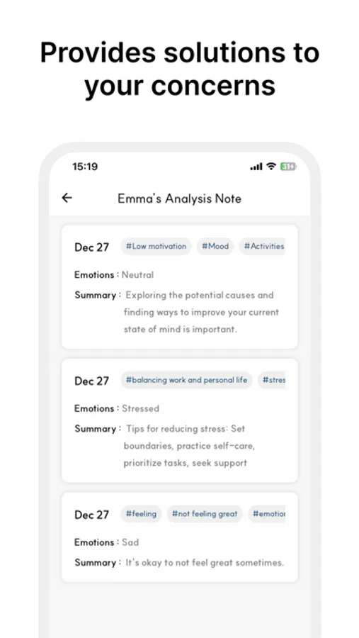 - Key Points Analysis Note: "Emma" chatbot's analysis notes. By understanding your feelings and key keywords, this bot provides short and clear answers in the form of analysis notes. Currently offered as a beta service, the "Emma" chatbot delves deeper into your conversations.