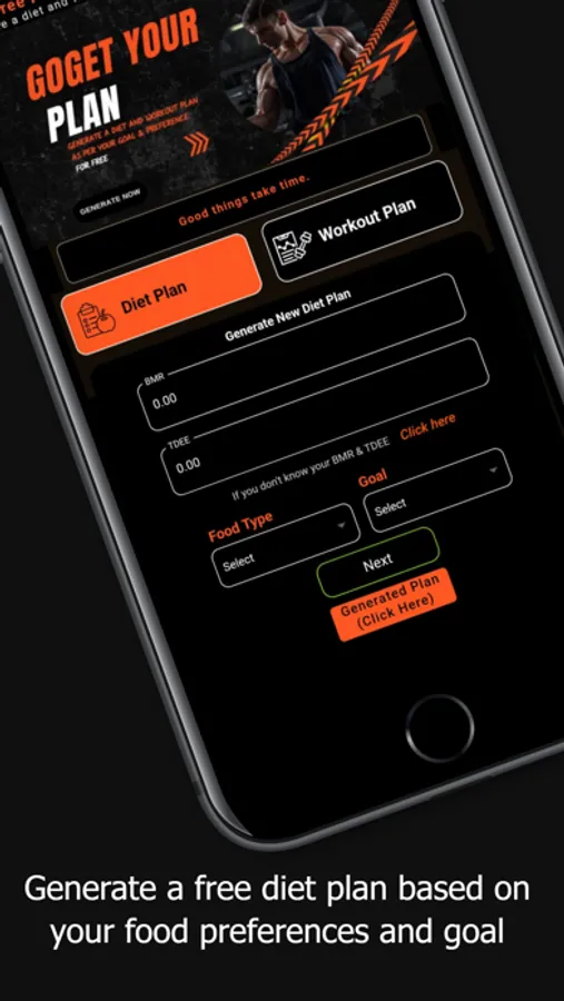 -A free diet and workout plan can be generated based on your goal and preferences.