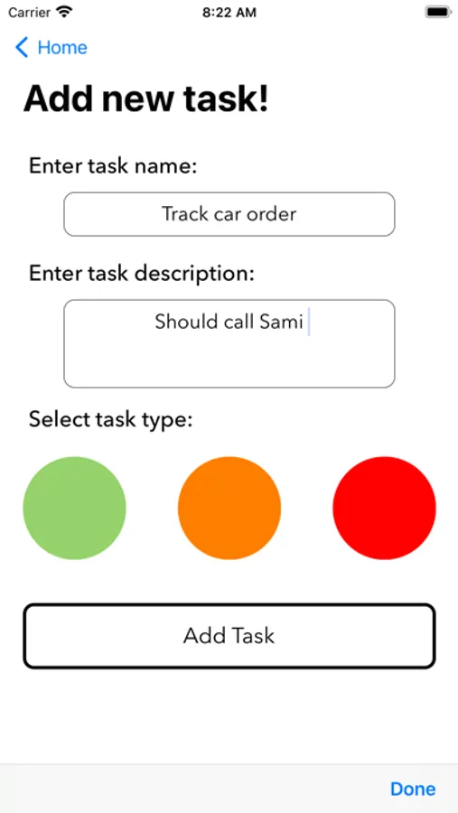 you will start organize and add your daily tasks with some description and you will see the importance on the left of each task cell.