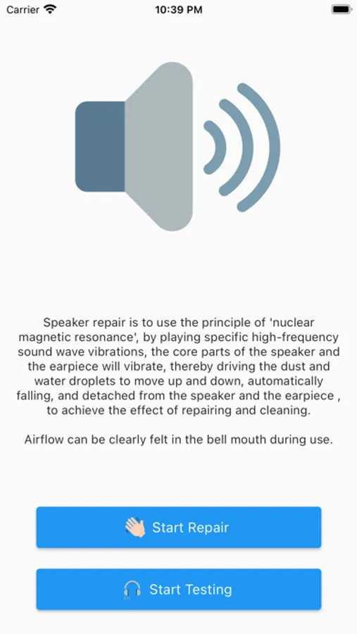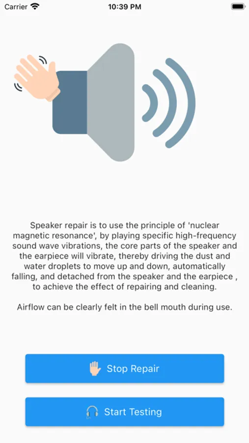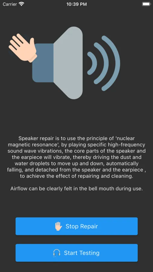Speaker repair is to use the principle of 'nuclear magnetic resonance', by playing specific high-frequency sound wave vibrations, the core parts of the speaker and the earpiece will vibrate, thereby driving the dust and water droplets to move up and down, automatically falling, and detached from the speaker and the earpiece , to achieve the effect of repairing and cleaning.