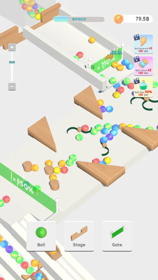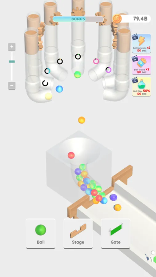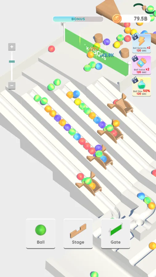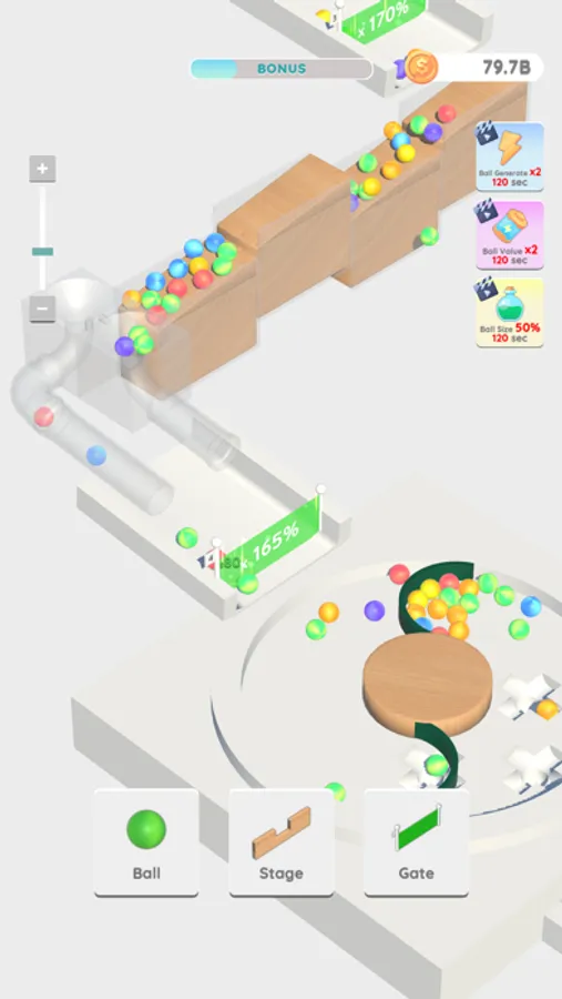ステージを強化して、ボールがうまく流れるように強化しよう!