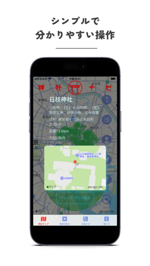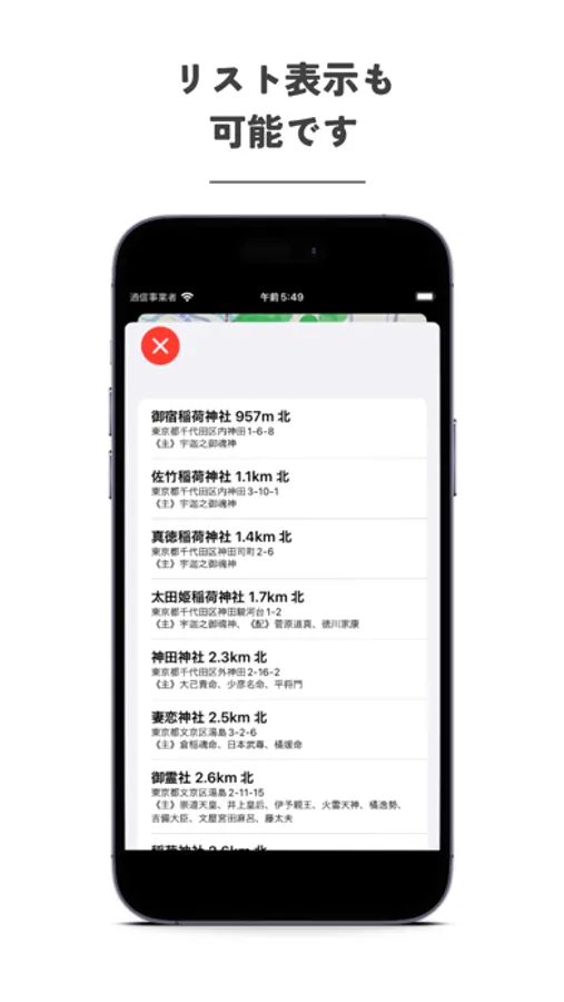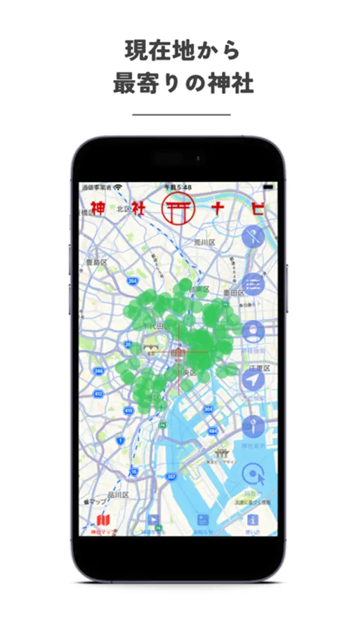 シンプルで使いやすいインターフェースで、快適に神社を探せます。地図上に最寄りの神社を表示し、ご祭神や方位、距離、または特定の神様で検索することもできます。あなたのニーズに合った素敵な神社を見つけるお手伝いします。このアプリは、全国約7万5千の神社を見つけて地図上に表示することができます。