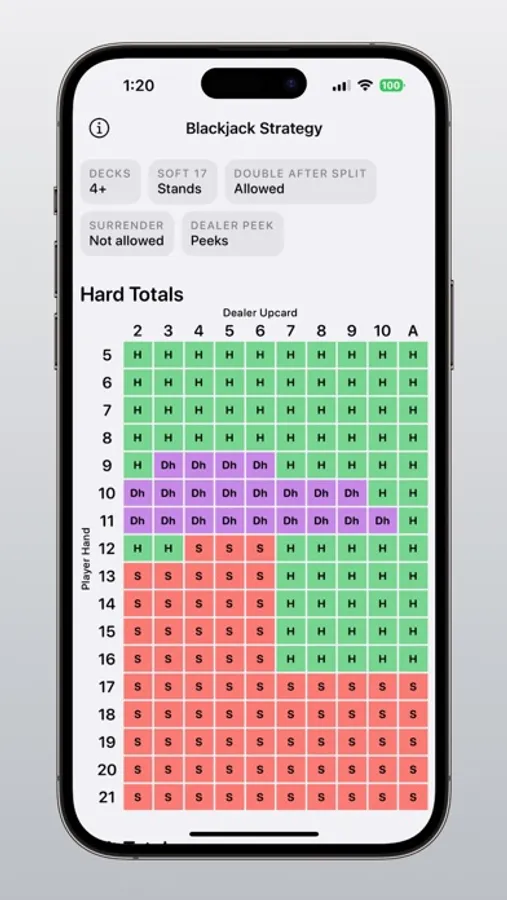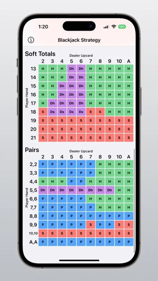 Master the art of Blackjack with our straightforward and comprehensive reference tool. Whether you're a novice eager to learn the ropes or a seasoned player wanting a quick refresher, this app is your pocket-sized guide to optimal decisions at the Blackjack table. Dive into detailed strategy charts, understand the odds, and gain an edge over the house. Play with confidence, knowing you're making informed decisions based on proven tactics. Sharpen your skills, reduce the house edge, and increase your chances of winning. It's time to play smart with the Blackjack Strategy Book!