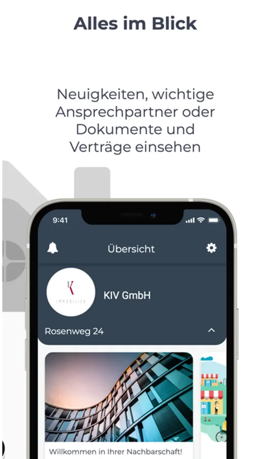 Willkommen in der digitalen Welt von KIV GmbH! Hier erhalten Sie als Eigentümer und Mieter 24/7 alle relevanten Informationen rund um Ihre Immobilie!